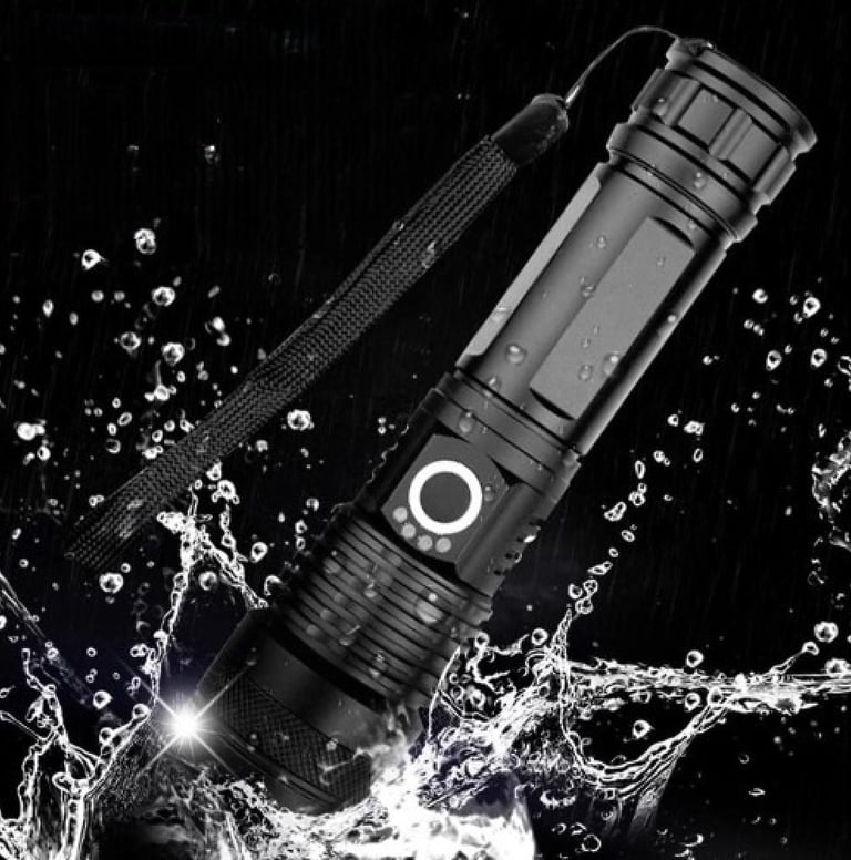 A lanterna tática de alta potência usada em emergências, trabalho e camping